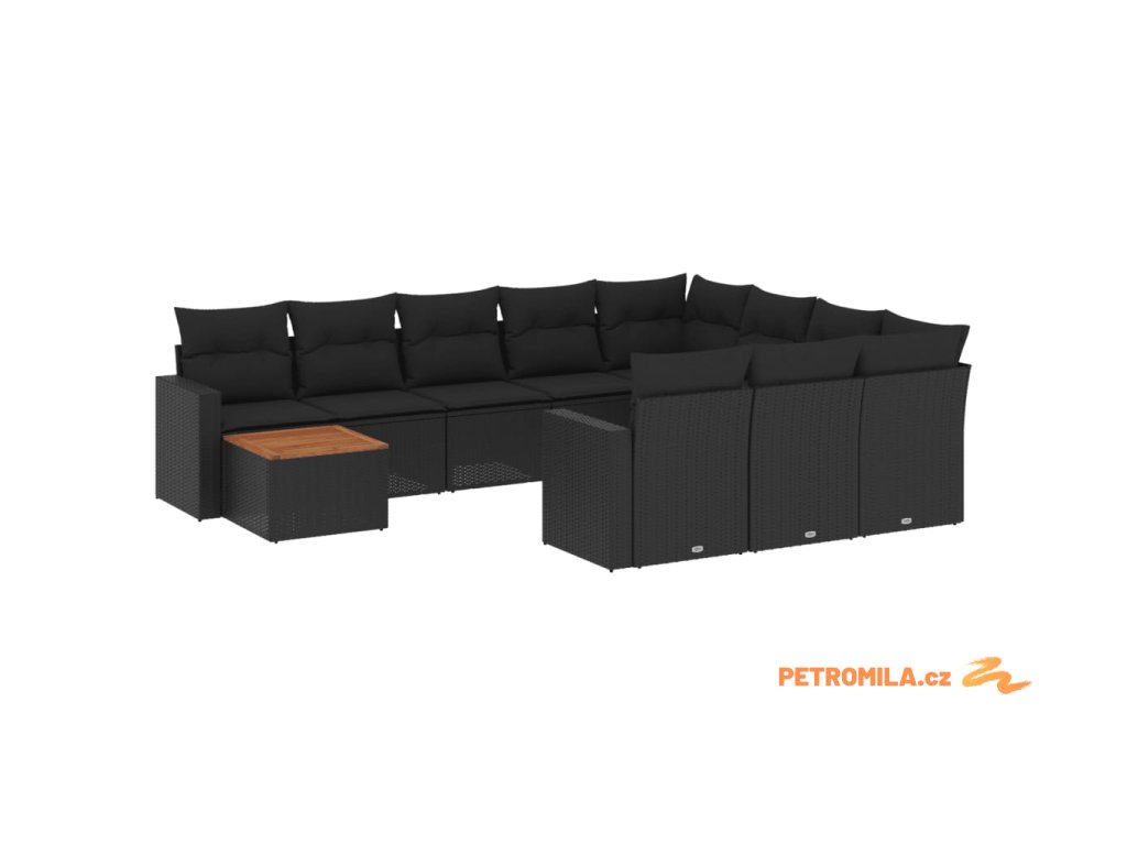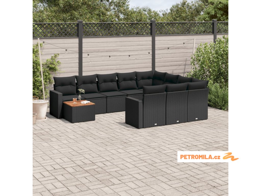 11dílná zahradní sedací souprava s poduškami černá polyratan