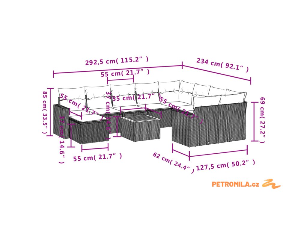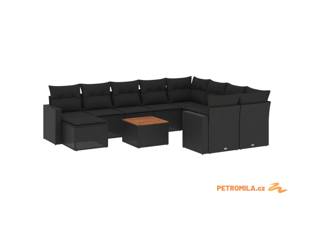 11dílná zahradní sedací souprava s poduškami černá polyratan