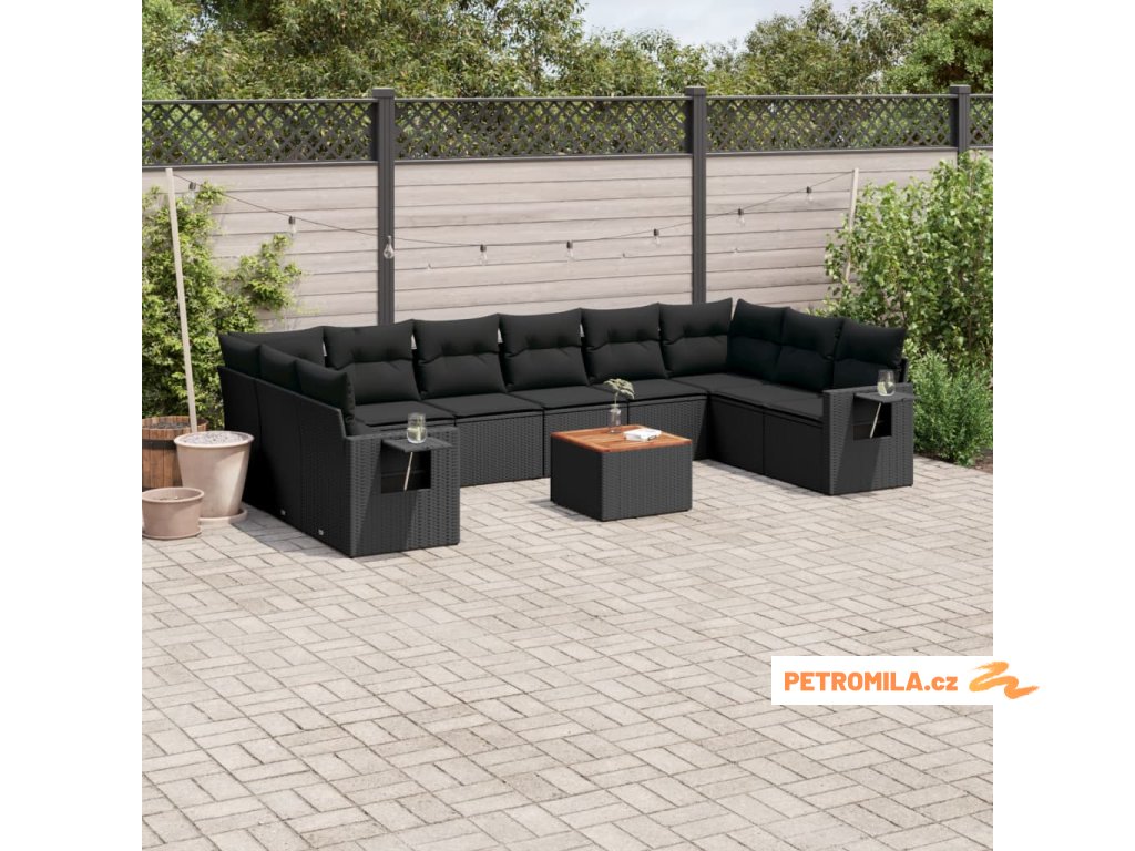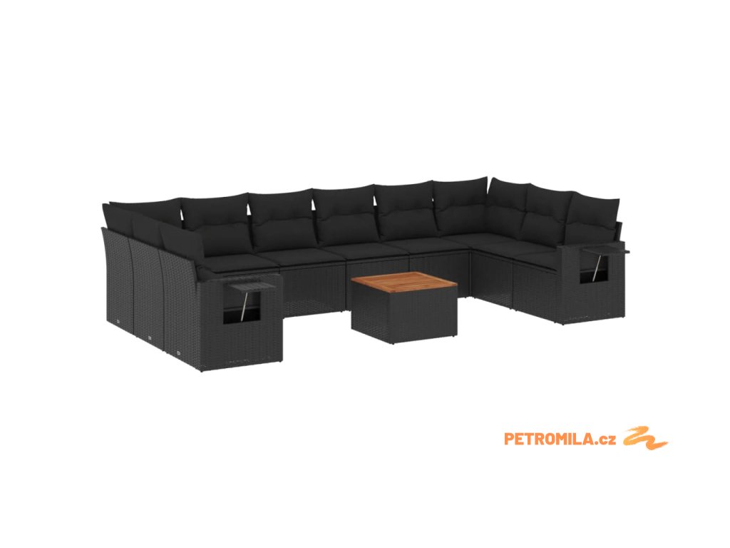 11dílná zahradní sedací souprava s poduškami černá polyratan