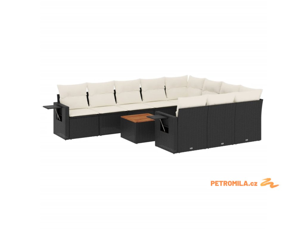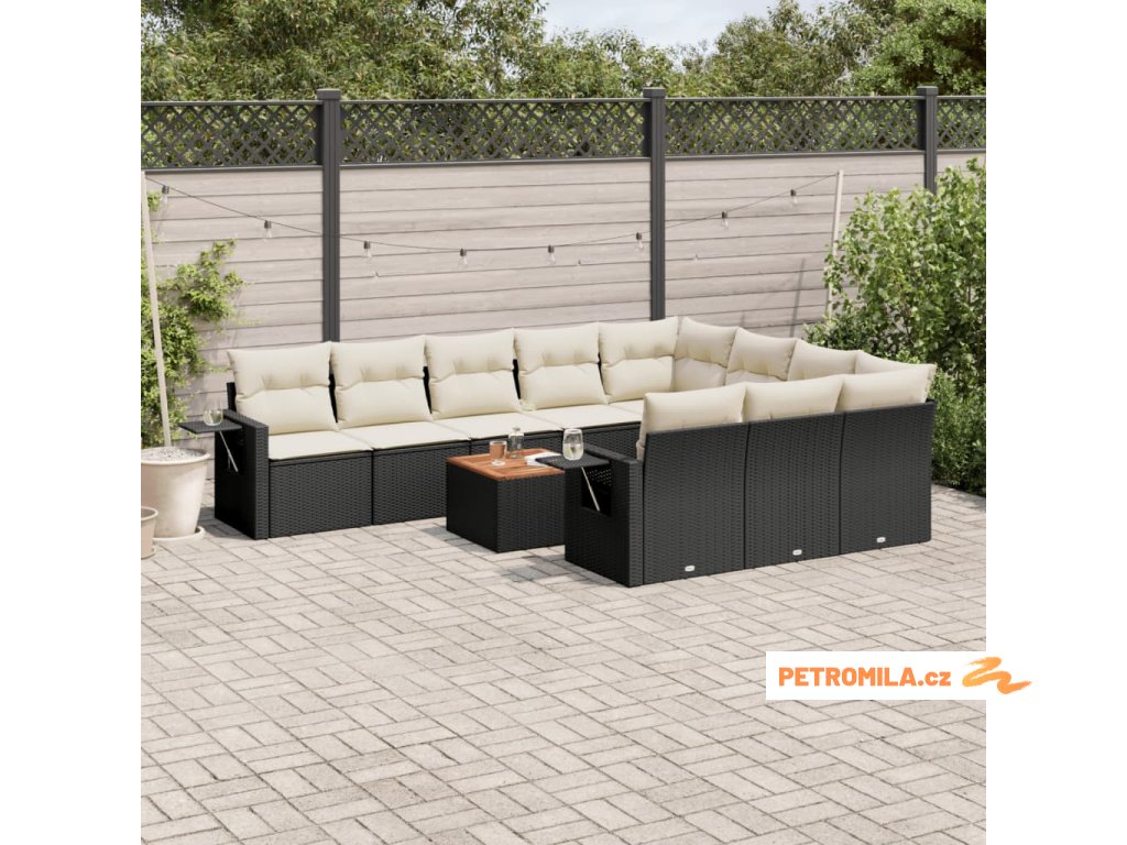 11dílná zahradní sedací souprava s poduškami černá polyratan
