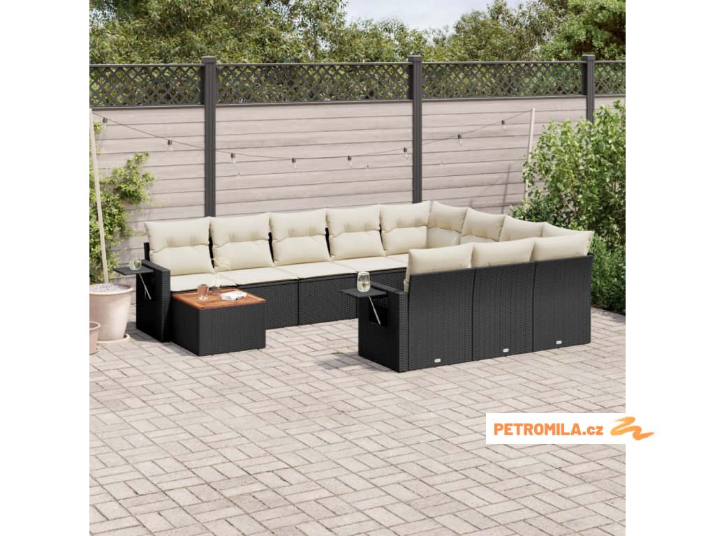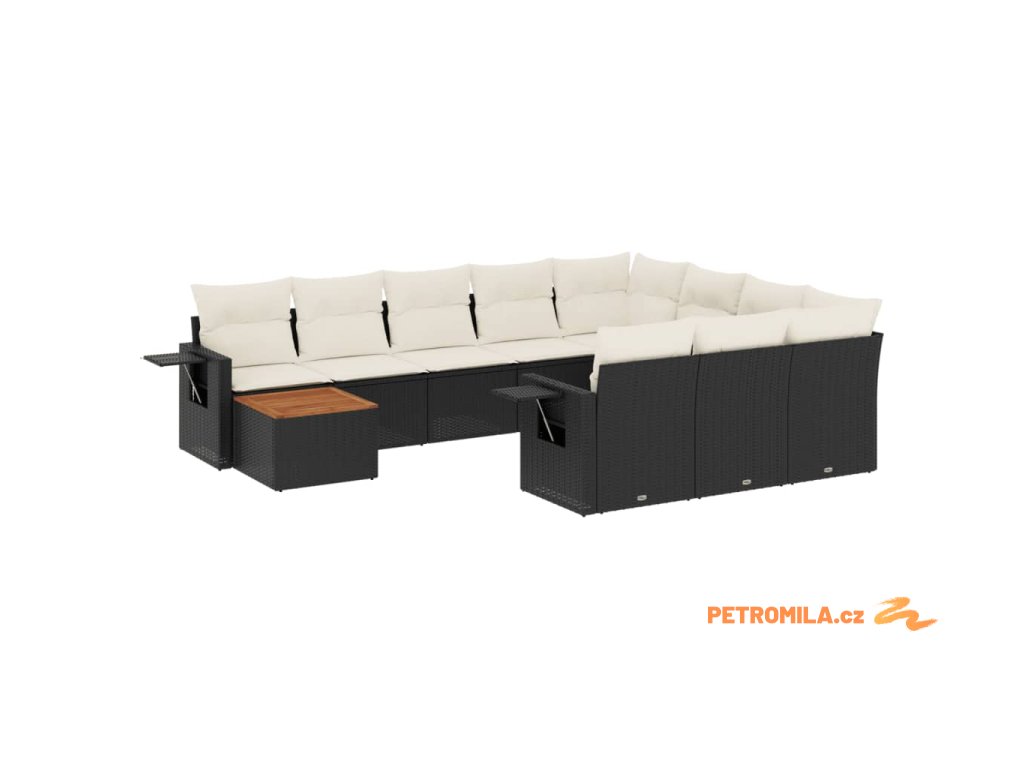 11dílná zahradní sedací souprava s poduškami černá polyratan