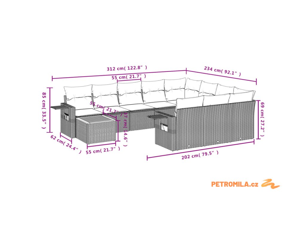 - Modulární design: Tato sada venkovního nábytku se vyznačuje modulární konstrukcí, je tedy zcela flexibilní a lze ji snadno přemisťovat, takže si můžete uspořádat venkovní nábytek dle vašich potřeb.