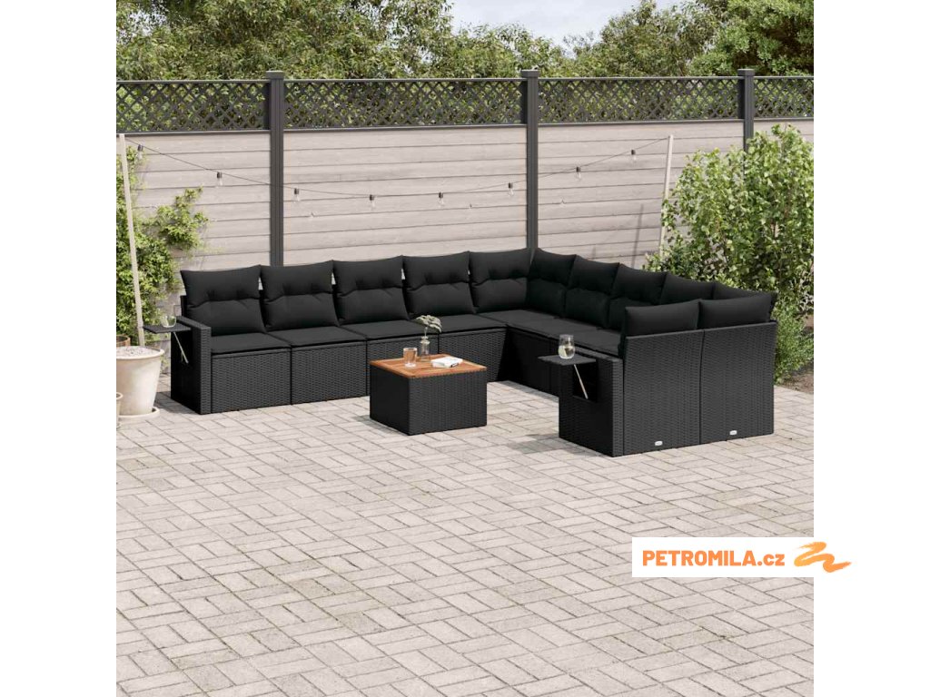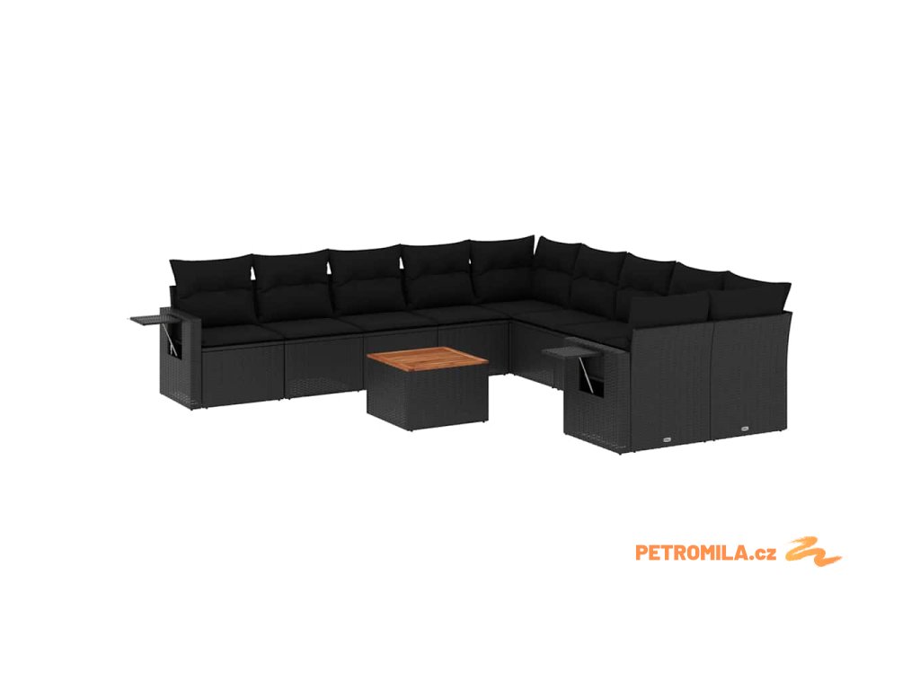 11dílná zahradní sedací souprava s poduškami černá polyratan