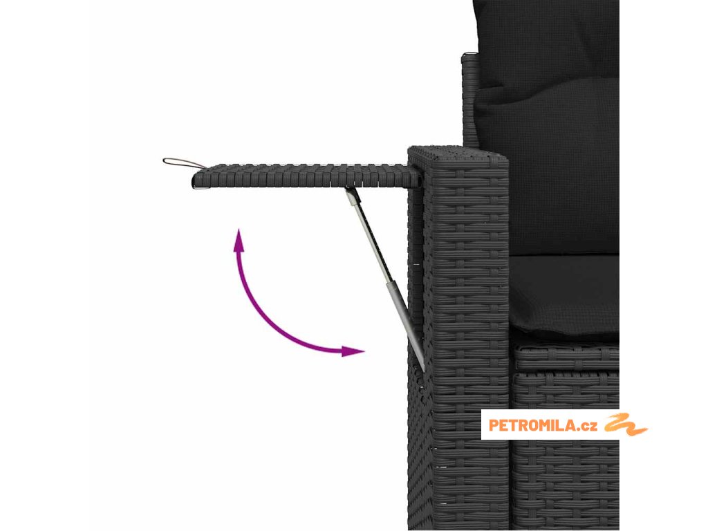 - Pohodlný odkládací stolek: Tento venkovní nábytek má na područkách skládací stolek s plynovou pružinou, jež poskytuje praktické místo pro vaše nezbytnosti, kde je budete mít na dosah ruky.