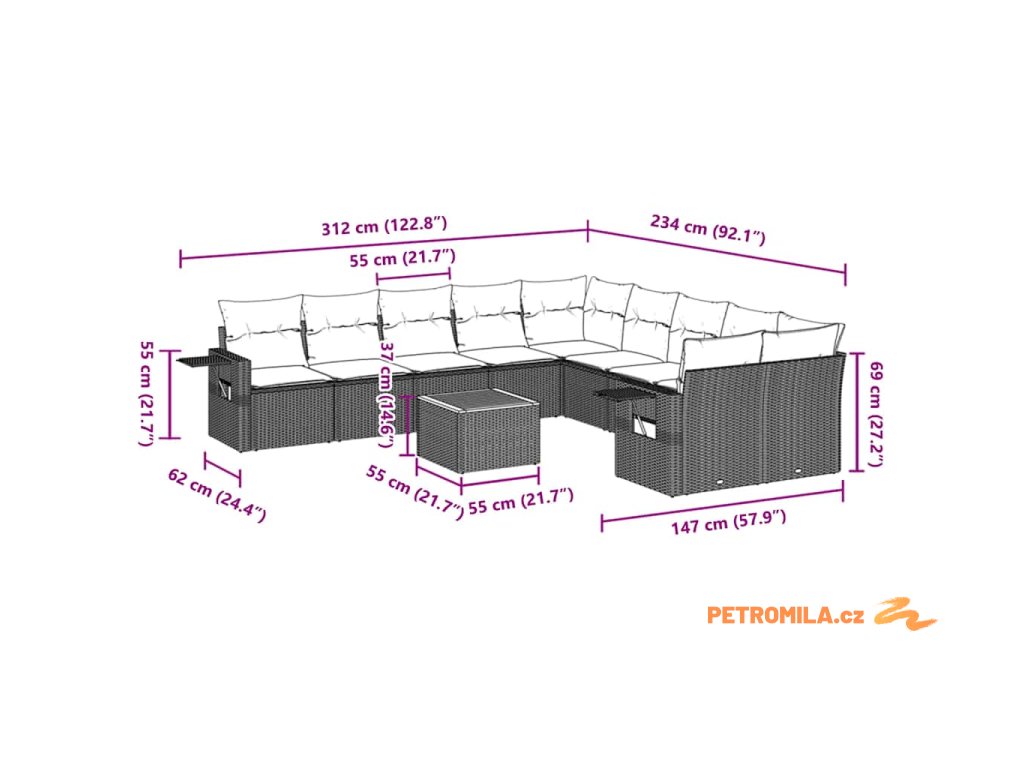 Tato zahradní sedací souprava je dokonalým doplňkem vaší zahrady, terasy nebo dvorku a poskytne vám pohodlné a příjemné místo, kde si můžete povídat s rodinou a přáteli nebo jen tak odpočívat a užívat si pobyt venku.