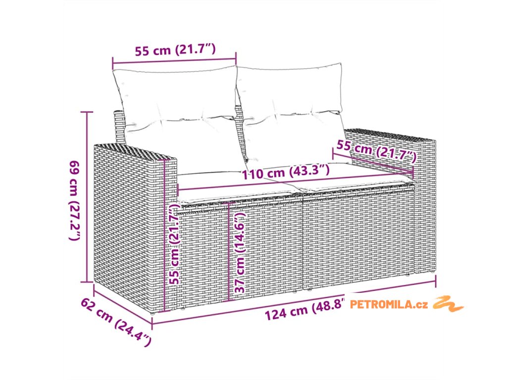 - Rozměry podušky na sedák: 55 x 55 x 3 cm (Š x H x T)
