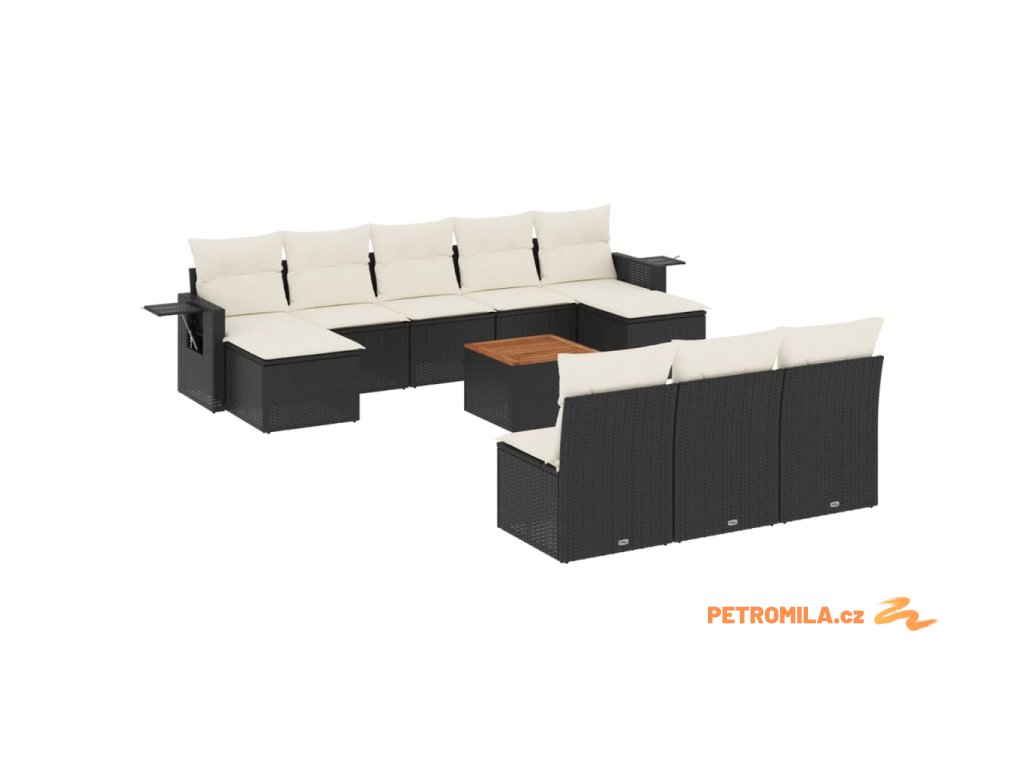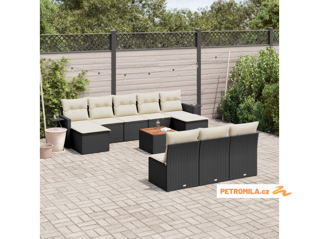 11dílná zahradní sedací souprava s poduškami černá polyratan