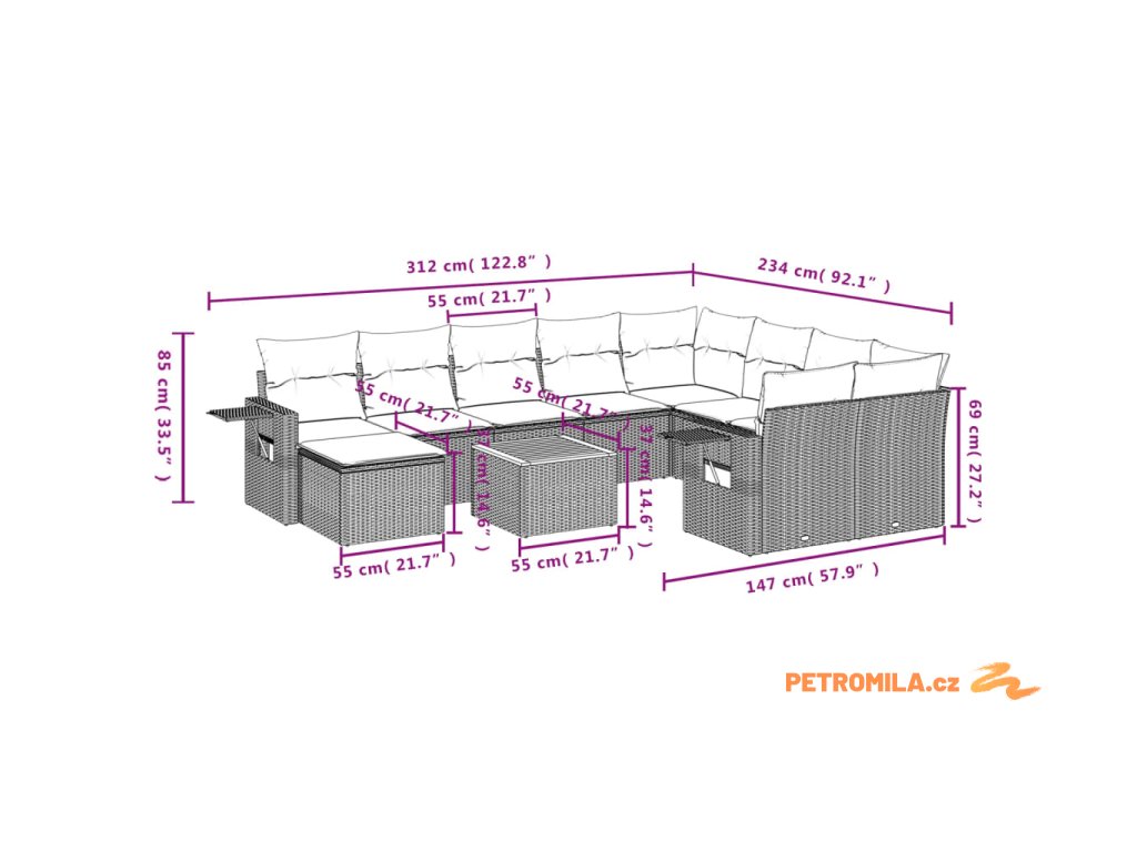 - Modulární design: Tato sada venkovního nábytku se vyznačuje modulární konstrukcí, je tedy zcela flexibilní a lze ji snadno přemisťovat, takže si můžete uspořádat venkovní nábytek dle vašich potřeb.