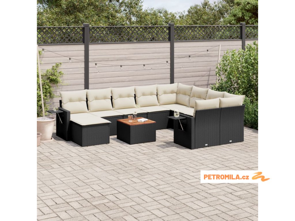 11dílná zahradní sedací souprava s poduškami černá polyratan
