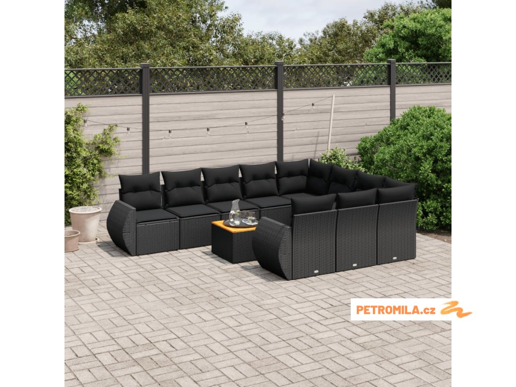 11dílná zahradní sedací souprava s poduškami černá polyratan