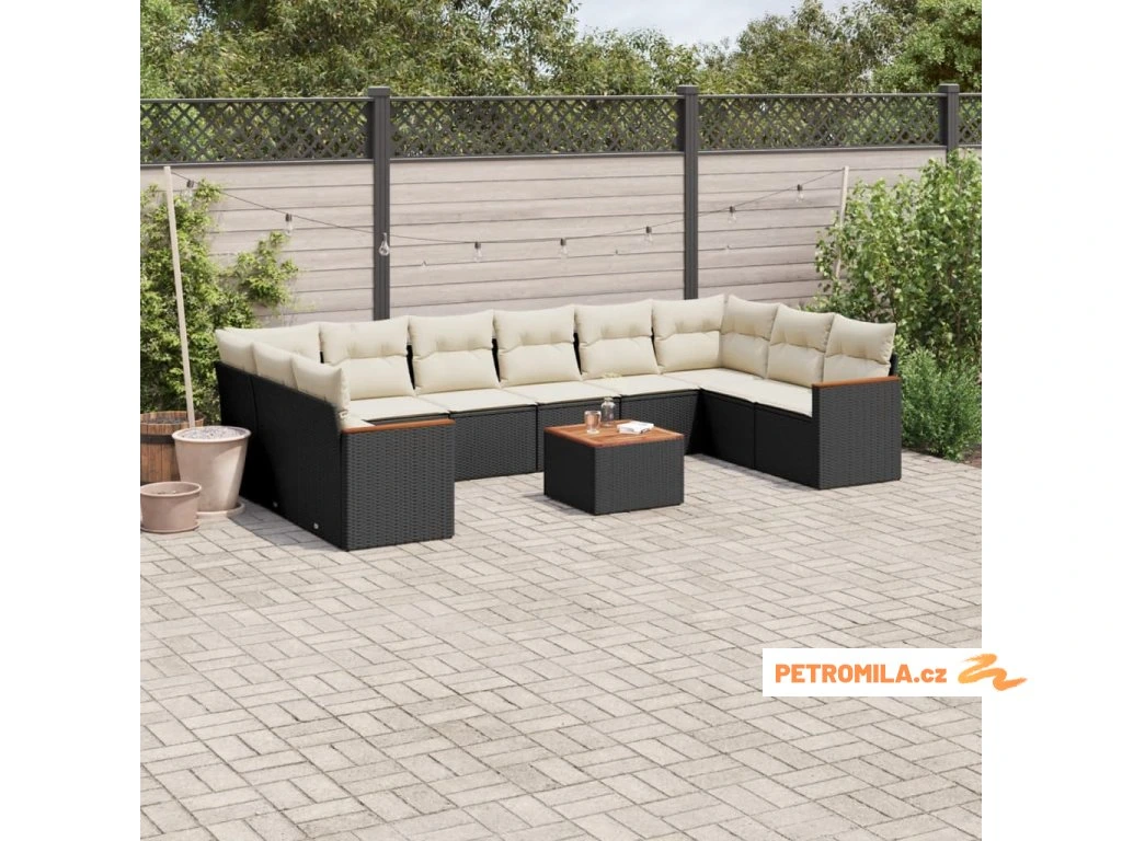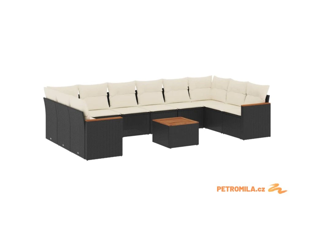 11dílná zahradní sedací souprava s poduškami černá polyratan