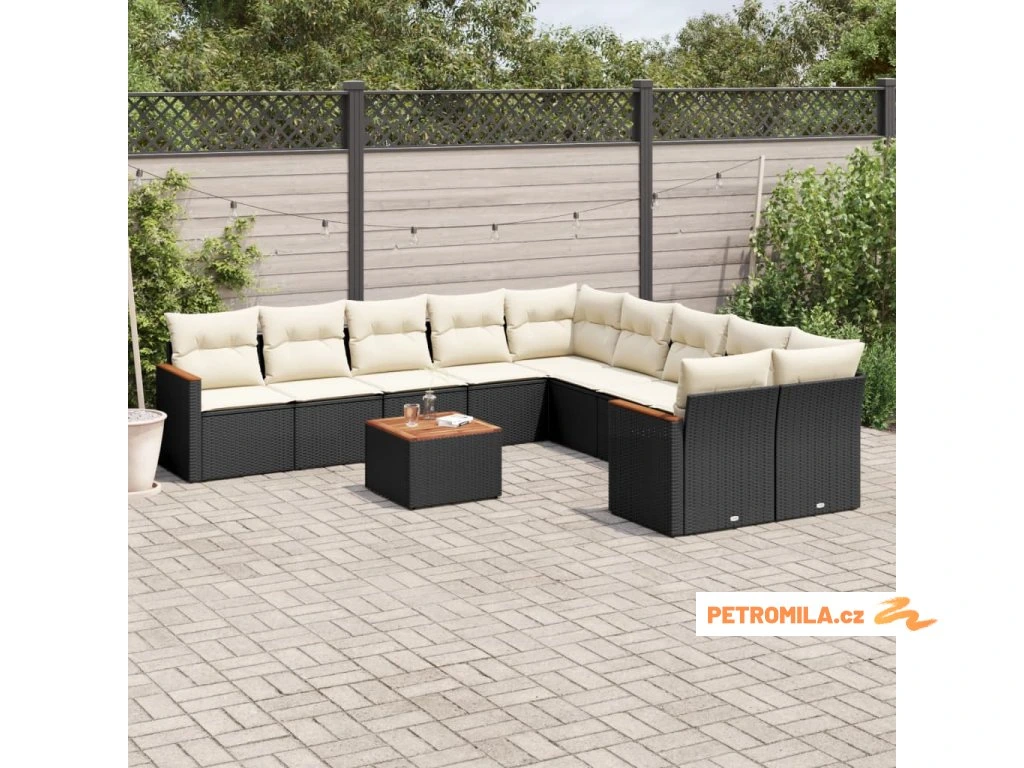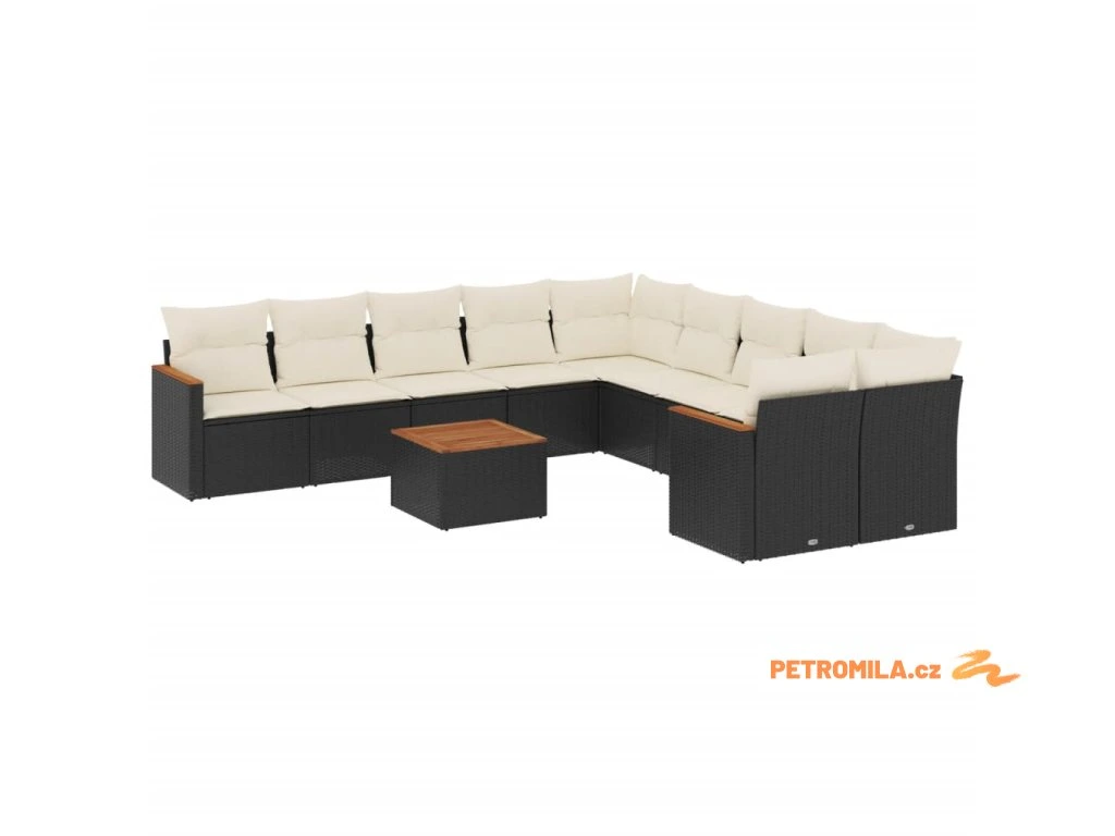 11dílná zahradní sedací souprava s poduškami černá polyratan