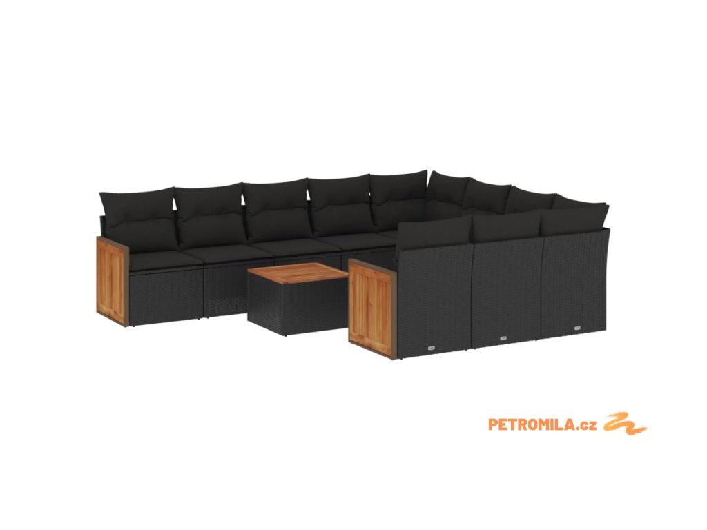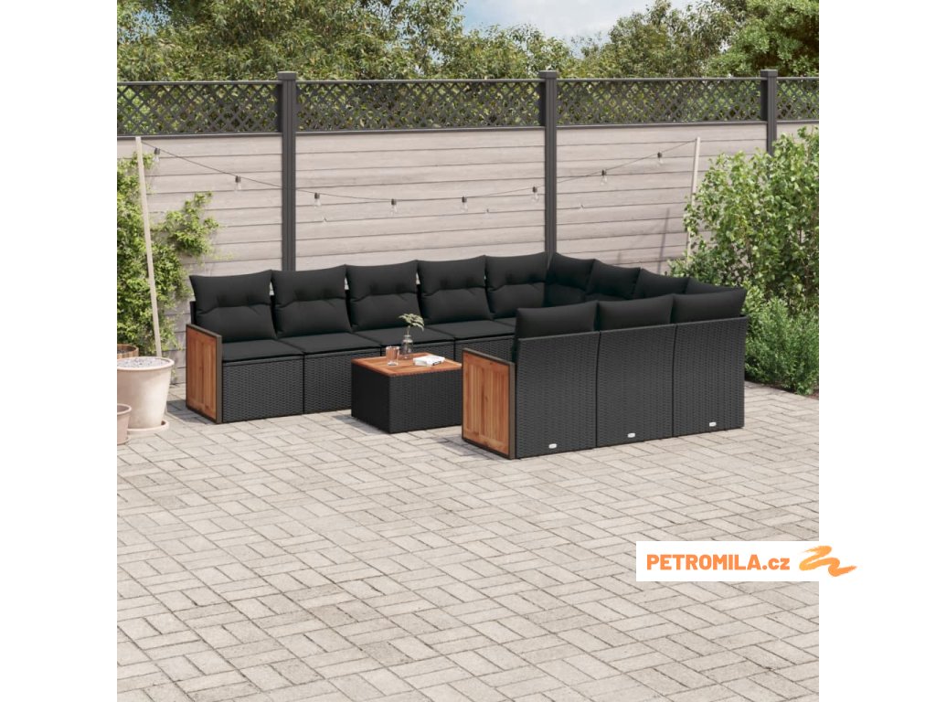 11dílná zahradní sedací souprava s poduškami černá polyratan
