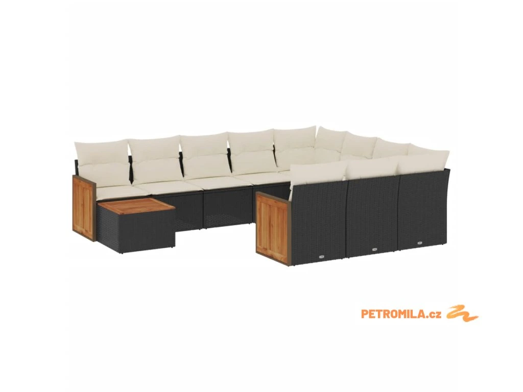 11dílná zahradní sedací souprava s poduškami černá polyratan