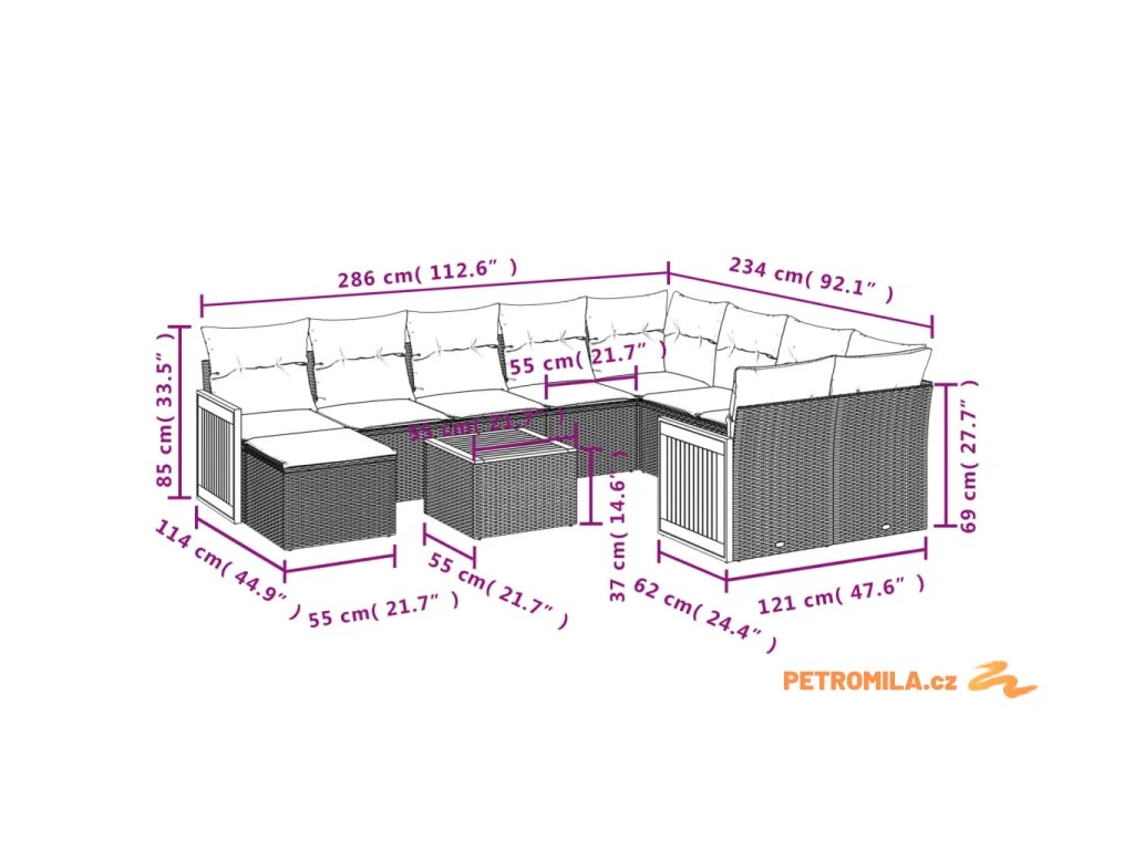 Tato zahradní sedací souprava je dokonalým doplňkem vaší zahrady, terasy nebo dvorku a poskytne vám pohodlné a příjemné místo, kde si můžete povídat s rodinou a přáteli nebo jen tak odpočívat a užívat si pobyt venku.