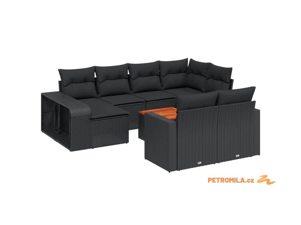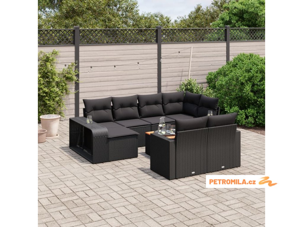 11dílná zahradní sedací souprava s poduškami černá polyratan