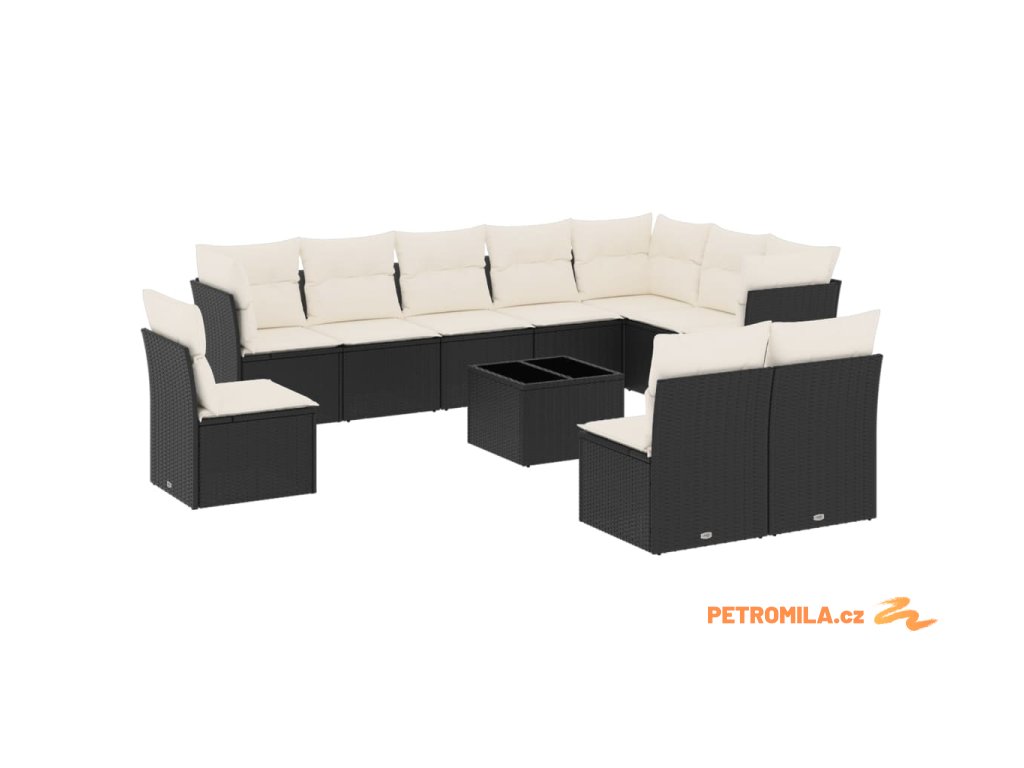 11dílná zahradní sedací souprava s poduškami černá polyratan