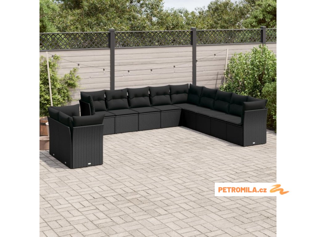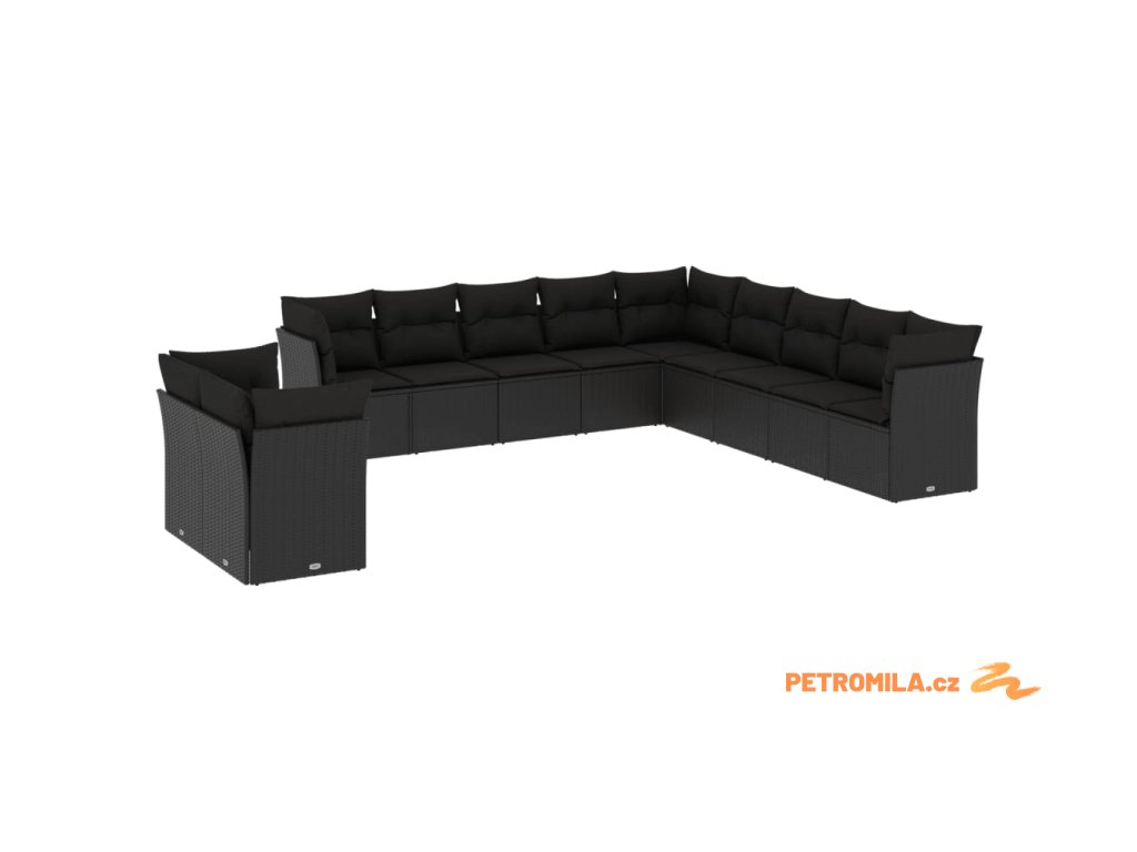 11dílná zahradní sedací souprava s poduškami černá polyratan