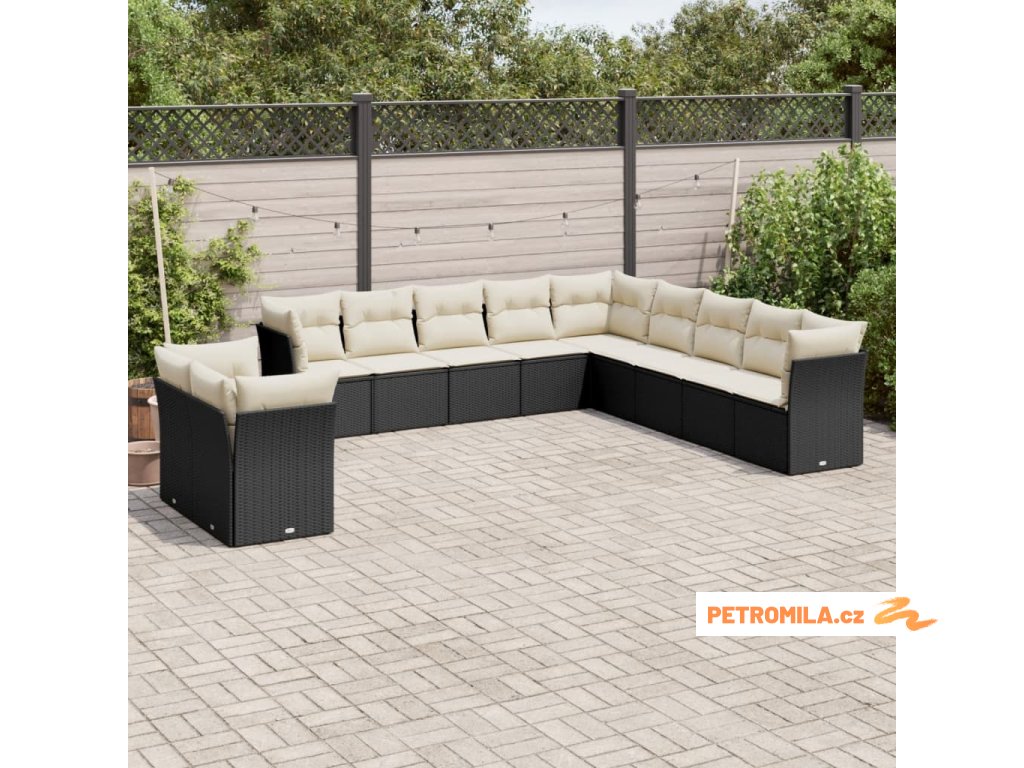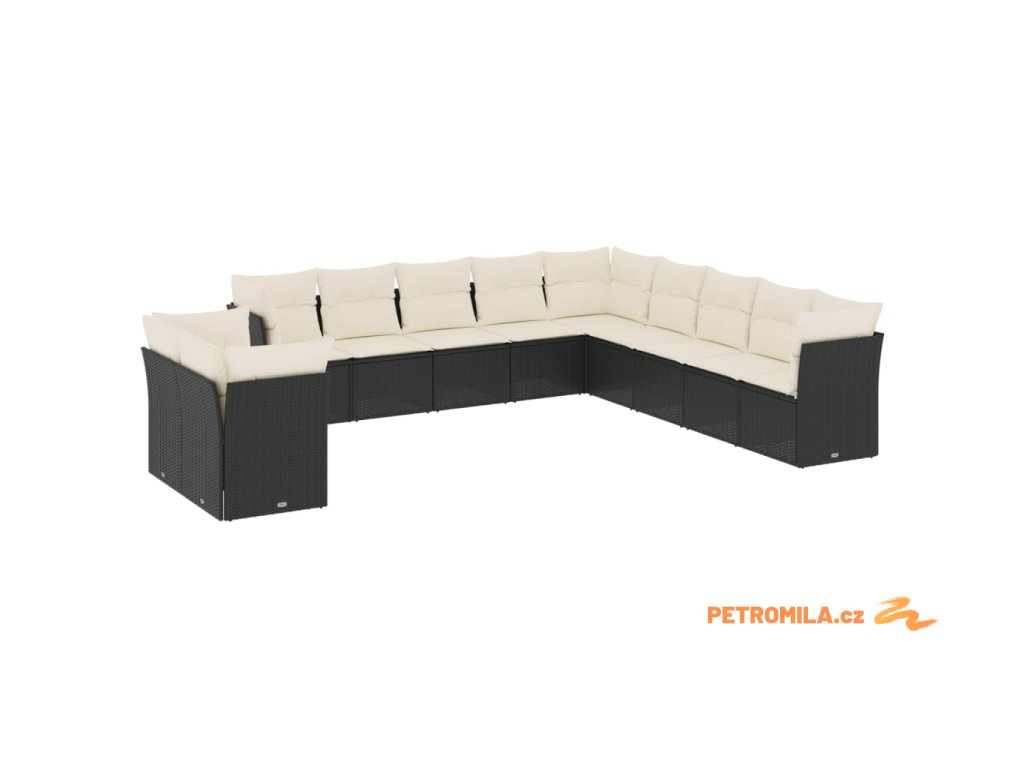 11dílná zahradní sedací souprava s poduškami černá polyratan