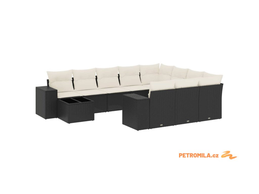 11dílná zahradní sedací souprava s poduškami černá polyratan
