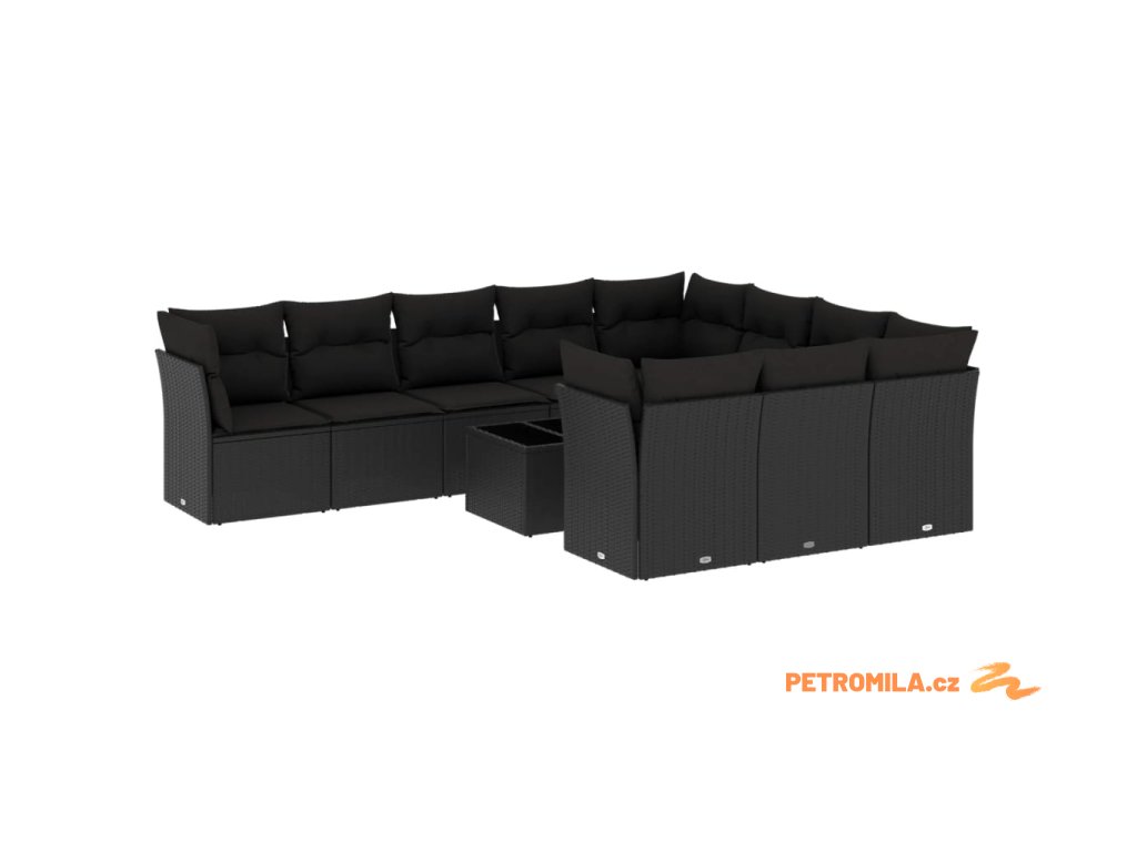 11dílná zahradní sedací souprava s poduškami černá polyratan