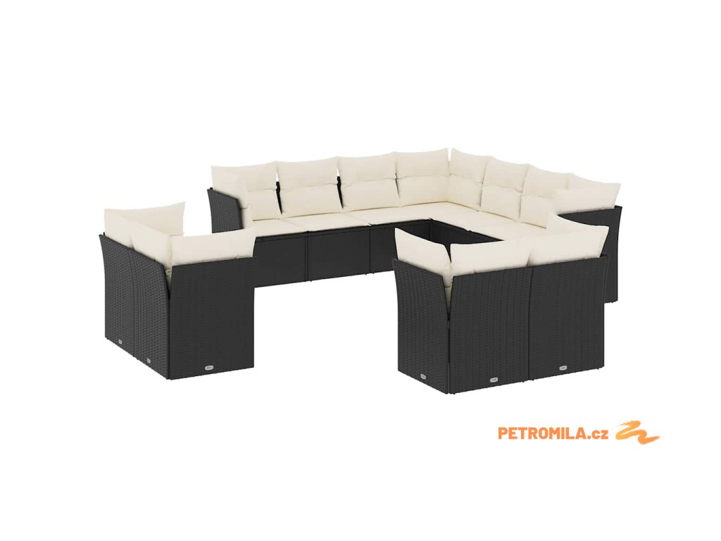 11dílná zahradní sedací souprava s poduškami černá polyratan