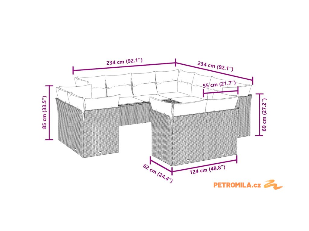 - 11 x poduška na sedák s odnímatelným a pratelným potahem