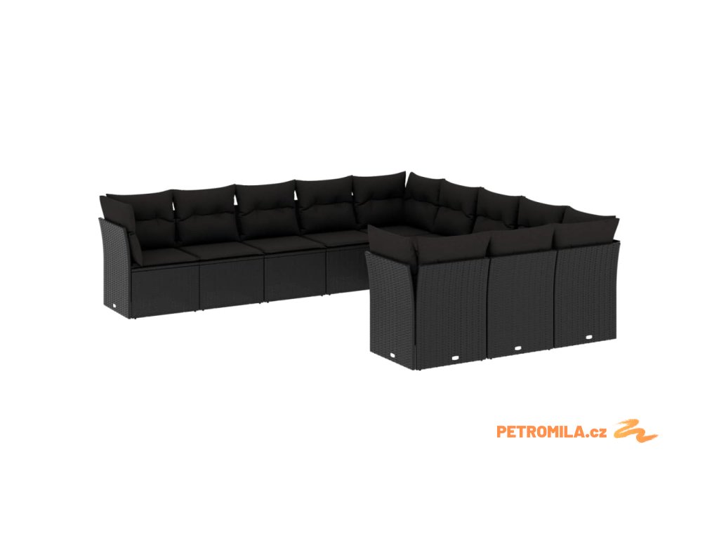 11dílná zahradní sedací souprava s poduškami černá polyratan
