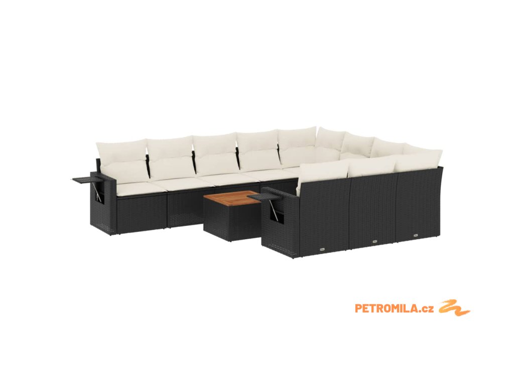 11dílná zahradní sedací souprava s poduškami černá polyratan
