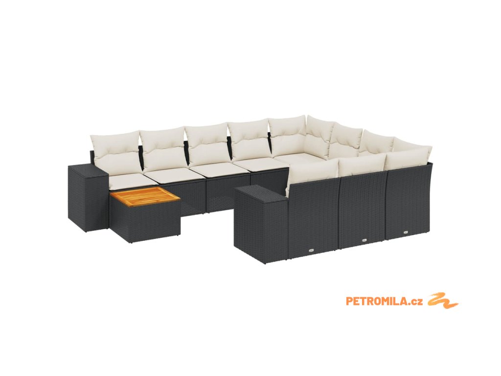 11dílná zahradní sedací souprava s poduškami černá polyratan