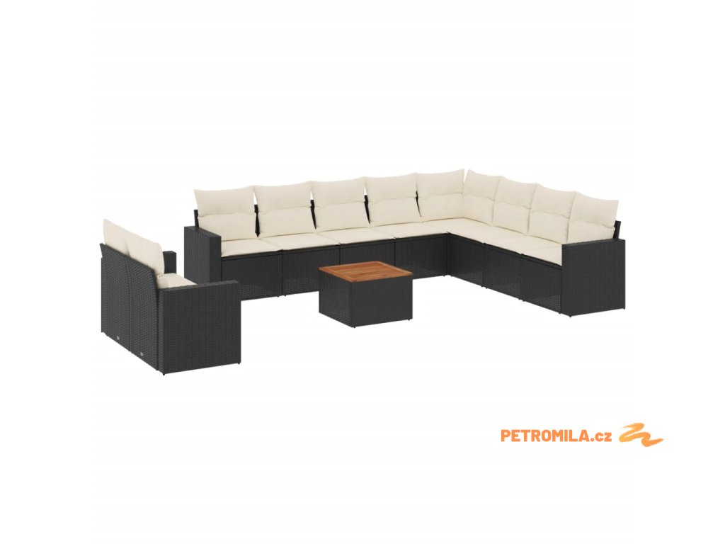 11dílná zahradní sedací souprava s poduškami černá polyratan