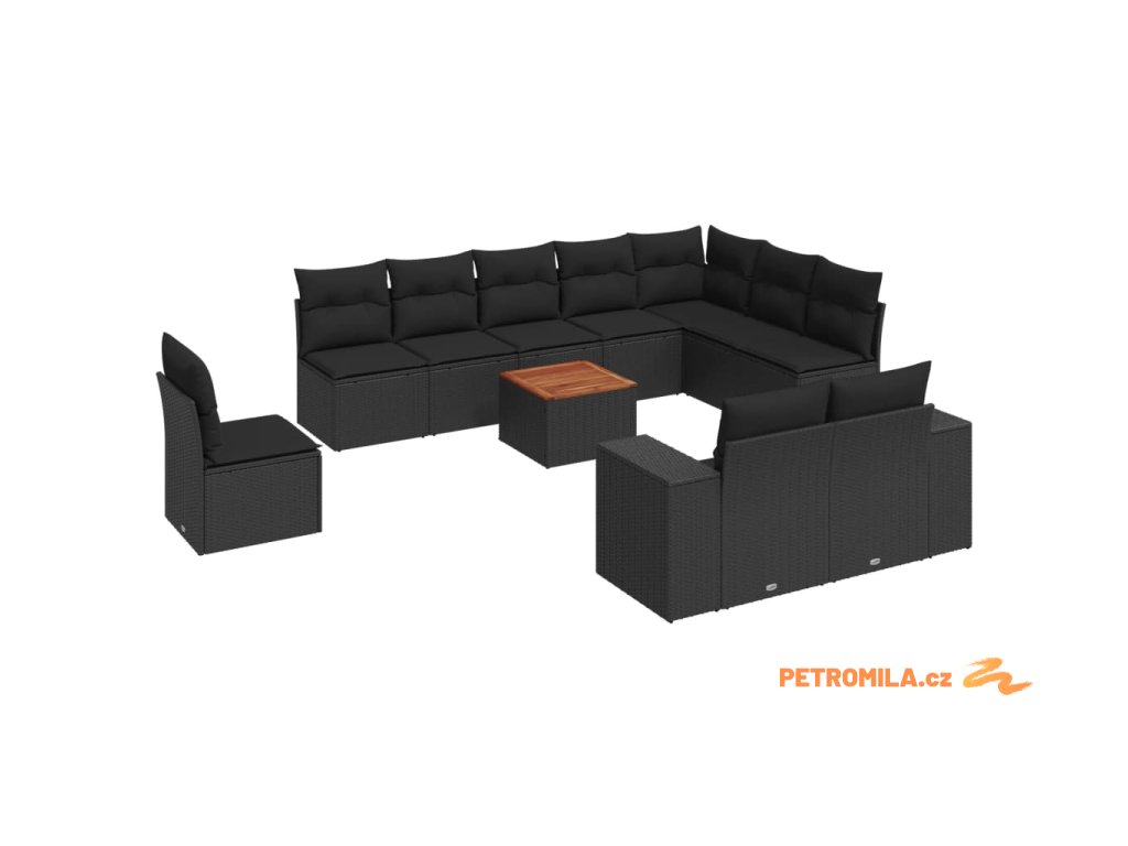 11dílná zahradní sedací souprava s poduškami černá polyratan
