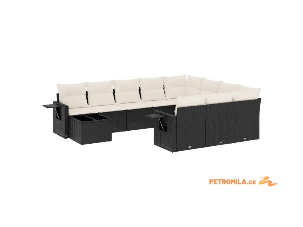 11dílná zahradní sedací souprava s poduškami černá polyratan
