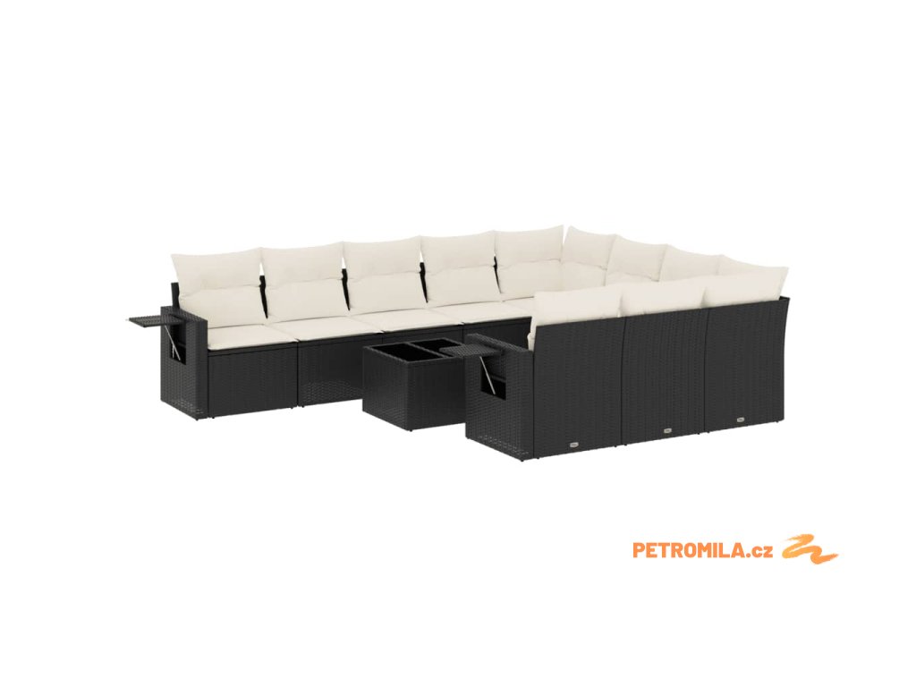 11dílná zahradní sedací souprava s poduškami černá polyratan