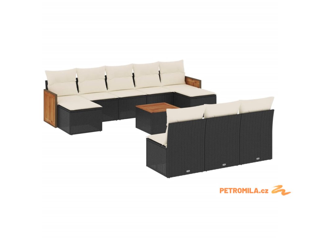 11dílná zahradní sedací souprava s poduškami černá polyratan