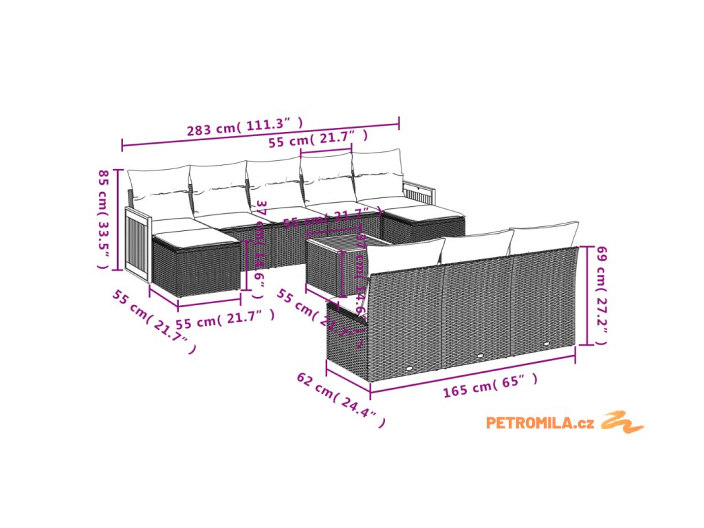 10dílná zahradní sedací souprava + tmavě šedé podušky bambus