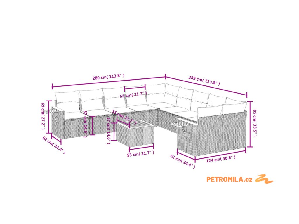 - Rozměry podušky na sedák: 55 x 55 x 3 cm (Š x H x T)