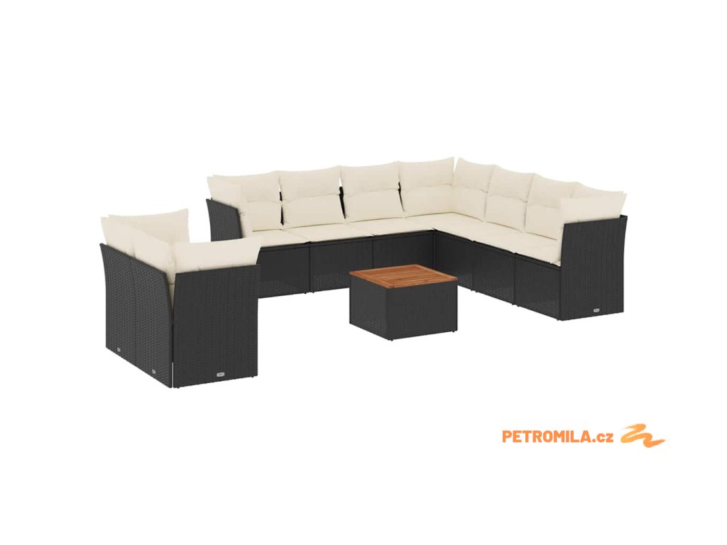 11dílná zahradní sedací souprava s poduškami černá polyratan
