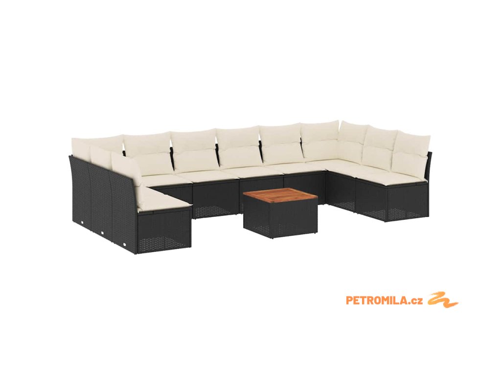 11dílná zahradní sedací souprava s poduškami černá polyratan