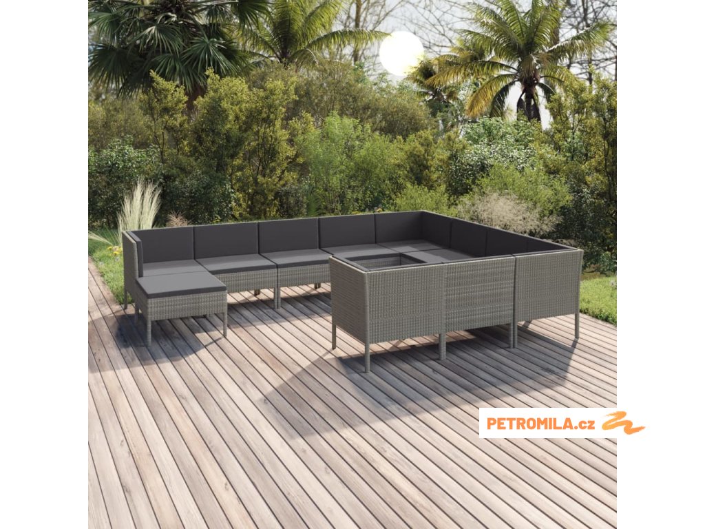 11dílná zahradní sedací souprava s poduškami polyratan šedá