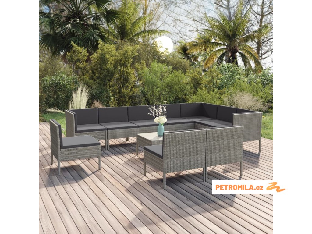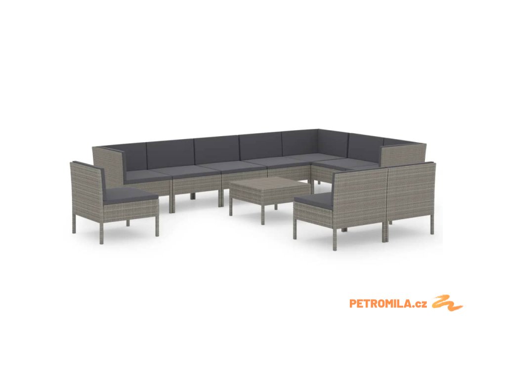 11dílná zahradní sedací souprava s poduškami polyratan šedá