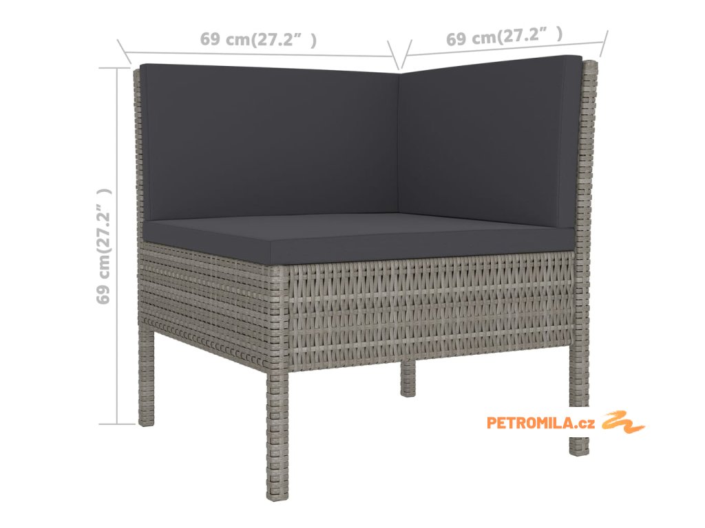 - Rozměry rohové pohovky: 69 x 69 x 69 cm (Š x H x V)