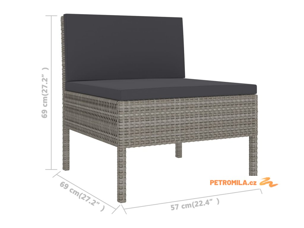 - Rozměry středové pohovky: 57 x 69 x 69 cm (Š x H x V)