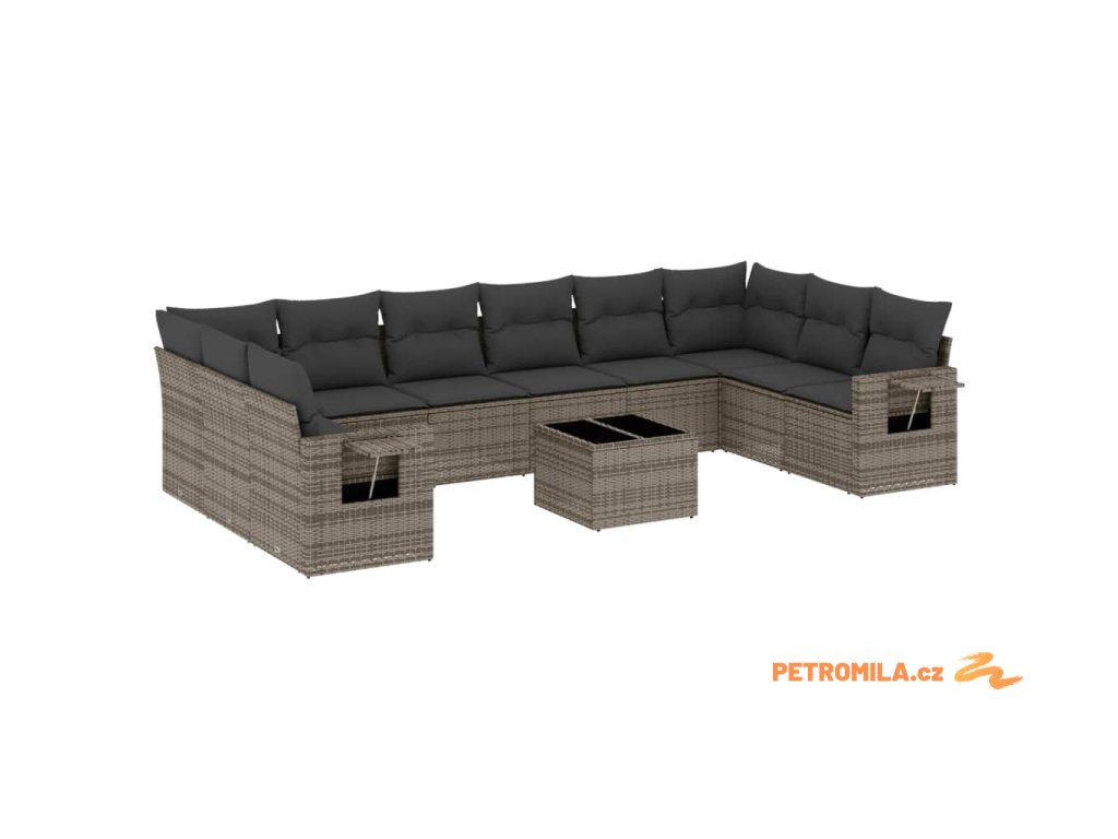 11dílná zahradní sedací souprava s poduškami šedá polyratan