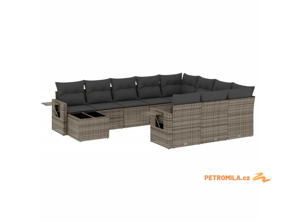 11dílná zahradní sedací souprava s poduškami šedá polyratan