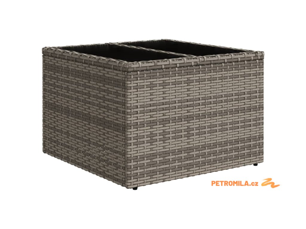 - Materiál: PE ratan, práškově lakovaná ocel, tvrzené sklo