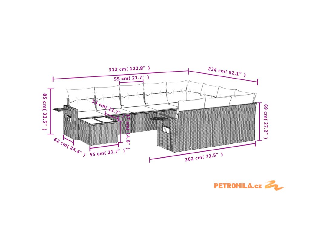 Tato zahradní sedací souprava je dokonalým doplňkem vaší zahrady, terasy nebo dvorku a poskytne vám pohodlné a příjemné místo, kde si můžete povídat s rodinou a přáteli nebo jen tak odpočívat a užívat si pobyt venku.