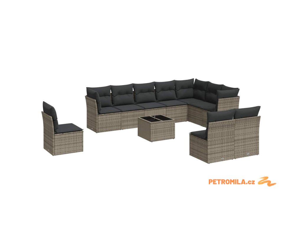 11dílná zahradní sedací souprava s poduškami šedá polyratan