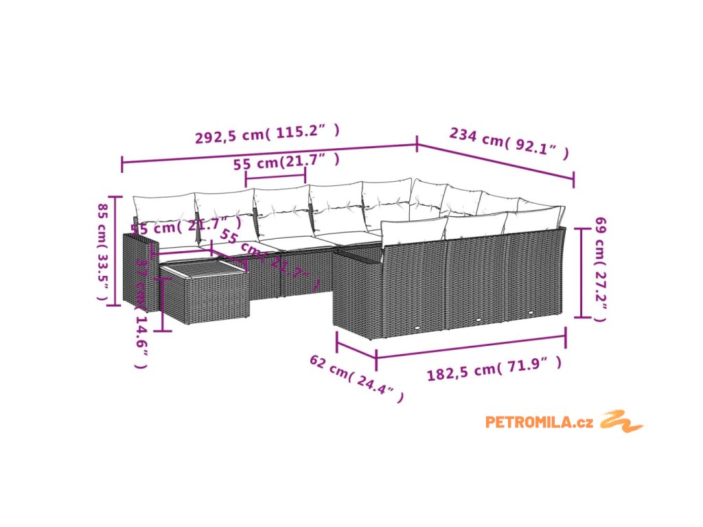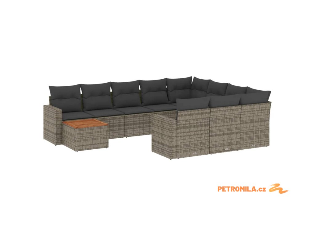11dílná zahradní sedací souprava s poduškami šedá polyratan