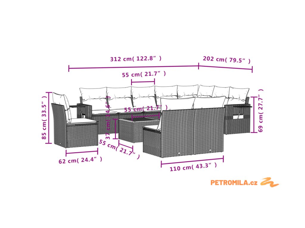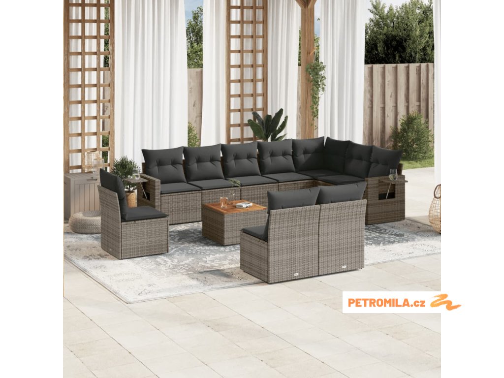 11dílná zahradní sedací souprava s poduškami šedá polyratan